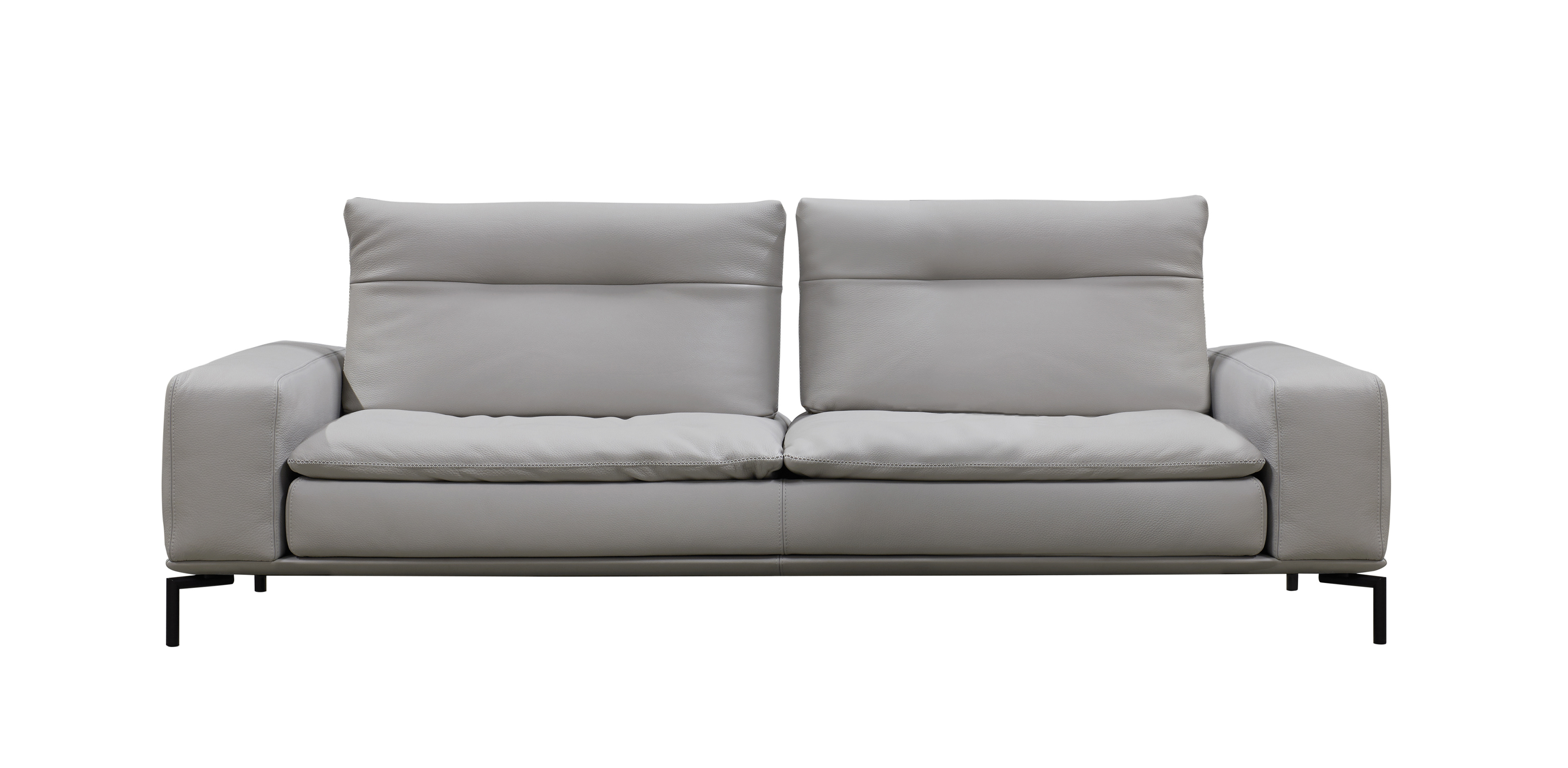 Modular sofa with a metal seat structure and a seat supported by elastic belts. The seat mat lies on a 3 different density polyurethane foams, which consists of a 3 layered quilted cover with an undeformable foam insert. The armrests are made of wood covered in hypoallergenic goose feathers and polyurethane foam. The wooden backrests are equipped with a mechanism that allows 2 comfort positions with 2 seat depths. The backrest cushions and headrest are in polyurethane foam. The legs are available in painted metal with a bronze effect or painted in matt anthracite with a soft touch finish. Divano modulare con struttura in metallo, con supporto di nastri elastici. Il materassino di seduta poggia su uno strato di poliuretano espanso a 3 densità ed è formato da un doppio strato di falda trapuntata con anima in gomma indeformabile. I braccioli sono in legno rivestiti in piuma d’oca anallergica ed in poliuretano. Gli schienali in legno sono dotati di un meccanismo che consente 2 posizioni di confort con 2 profondità di seduta. I cuscini degli schienali ed i poggiatesta sono in poliuretano espanso. I piedi sono disponibili in metallo verniciato effetto bronzo o verniciati antracite opaco finitura Soft touch.