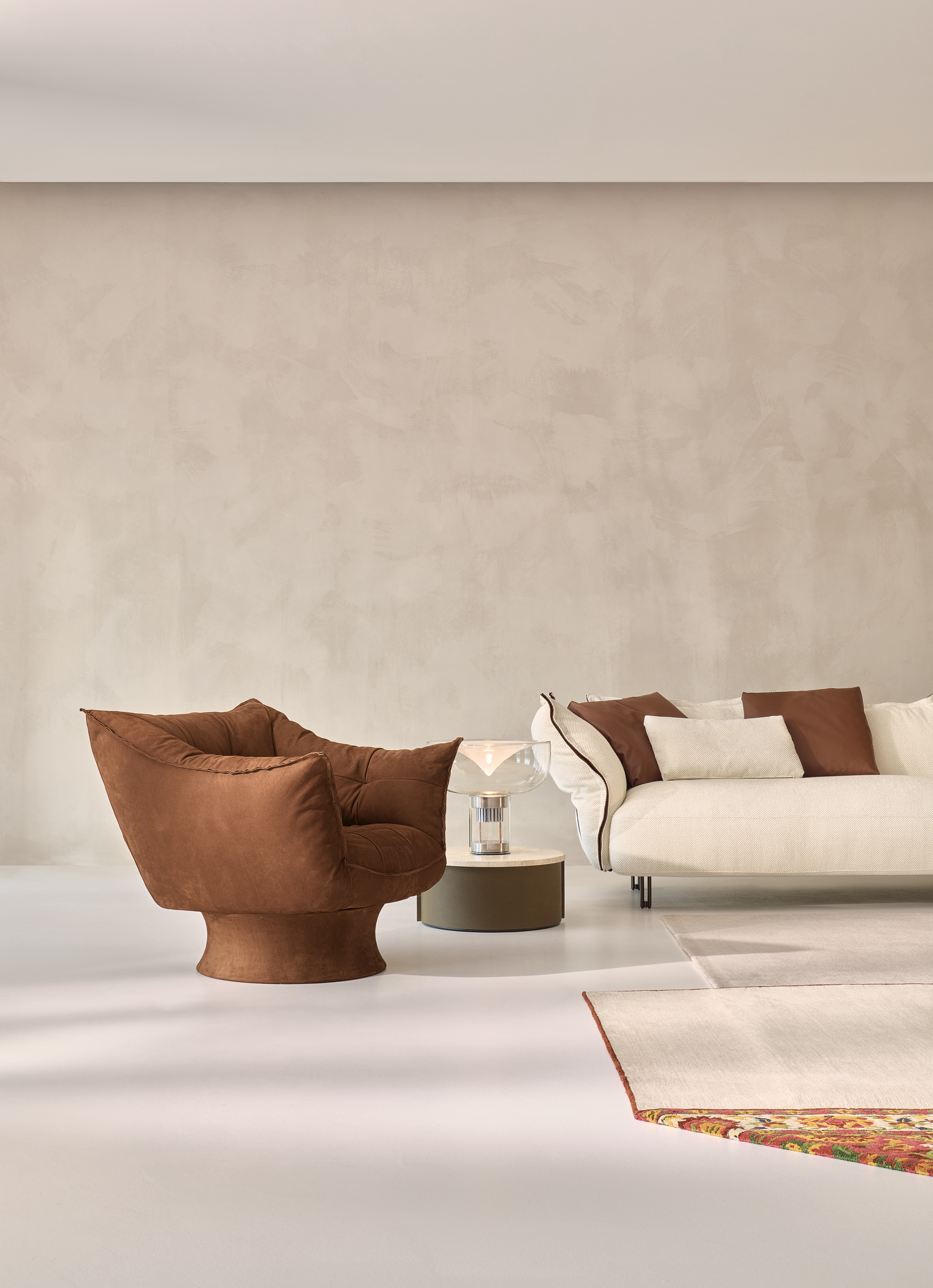 Modern elegance in a soft, embracing hug. Donaldina welcomes you with her carefree style of relaxation. Moderna eleganza in un abbraccio soffice e avvolgente. Donaldina accoglie con il suo stile di relax spensierato.