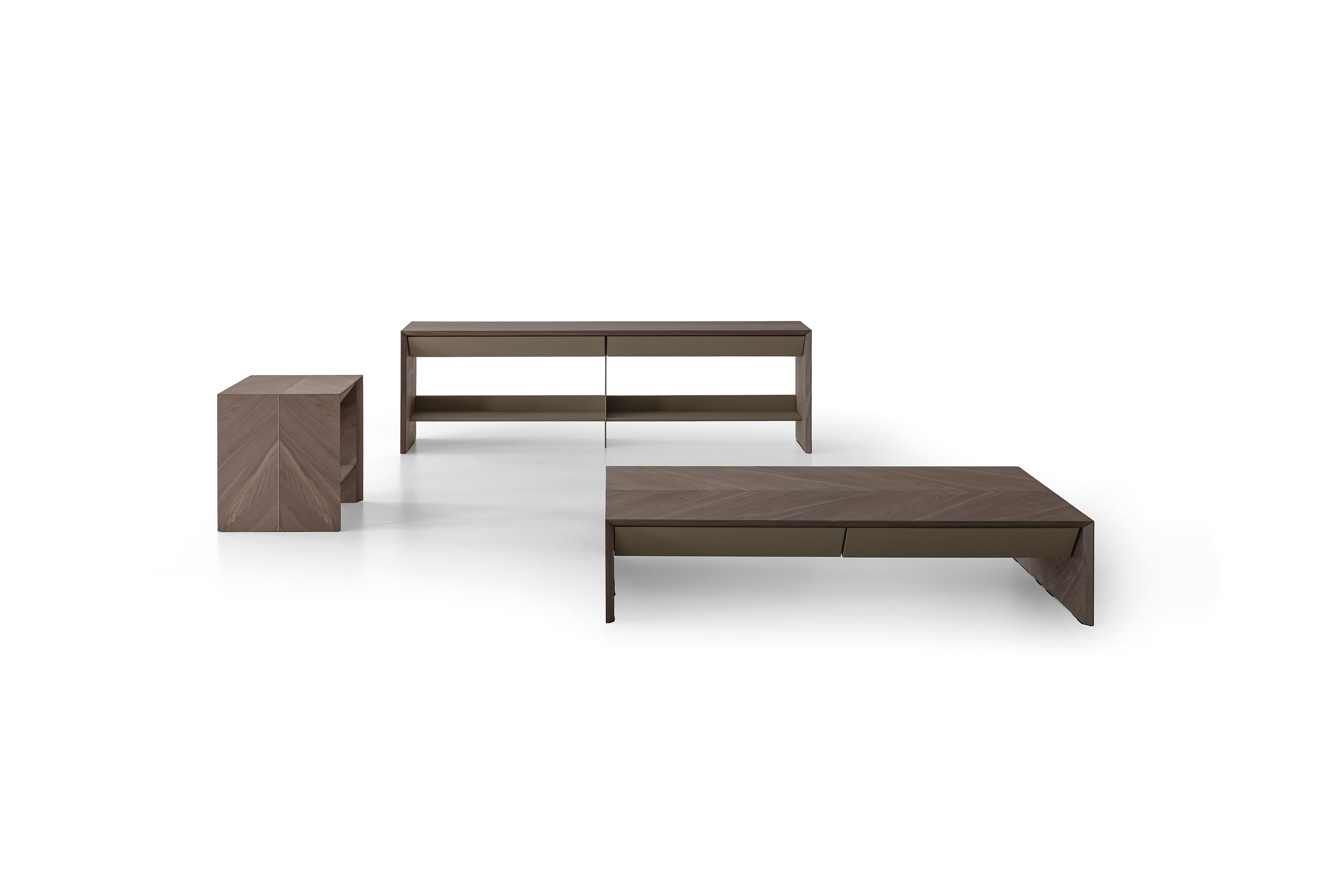 Avalon is a collection of coffee tables with strong visual impact. Rigor and essentiality define this iconic collection, where the essence of Canaletto walnut combined with leather surfaces and the presence of hidden drawers beneath the tabletop make it a prestigious and important piece. The name Avalon evokes the legendary island, as well as the 1982 Roxy Music song, Avalon. Avalon è una collezione di tavolini da salotto e di grande impatto scenico. Rigore e essenzialità , per una collezione iconica dove l’essenza della noce Canaletto connessa alle superfici in cuoio,.e alla presenza dei cassetti invisibili sotto piano ne fanno un oggetto importante e di prestigio il nome Avlaon evoca la famosa un’isola leggendaria, nonchè il brano dei Roxy Music, Avalon 1982.