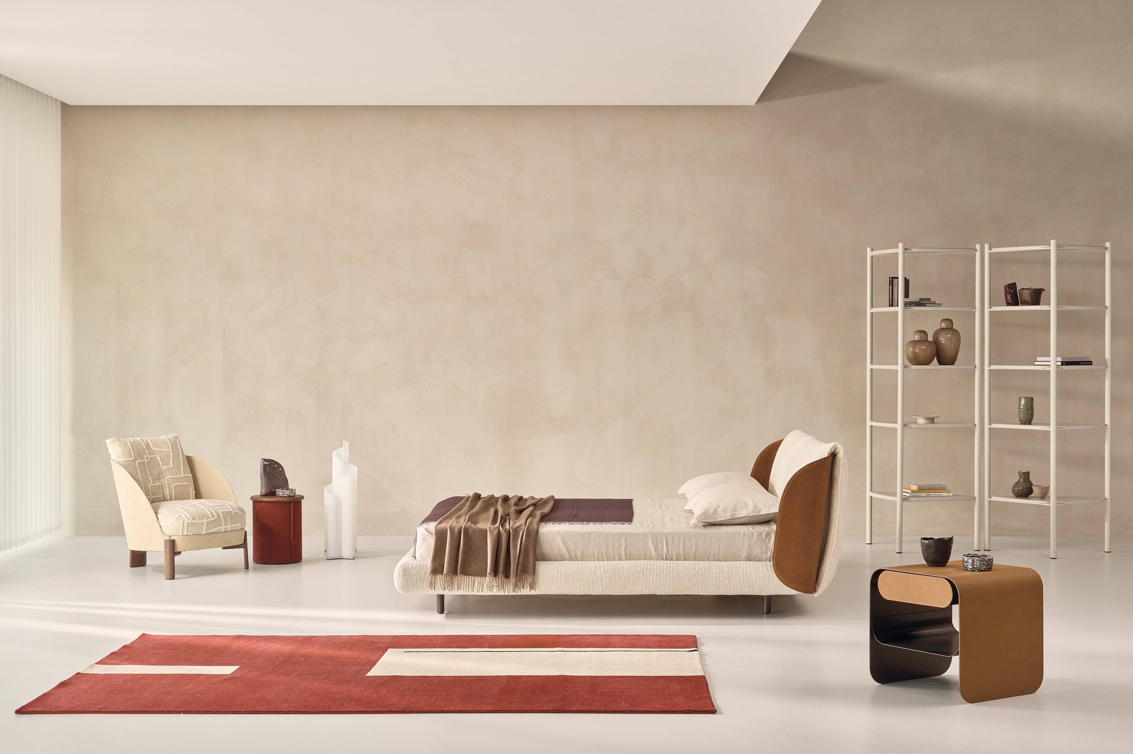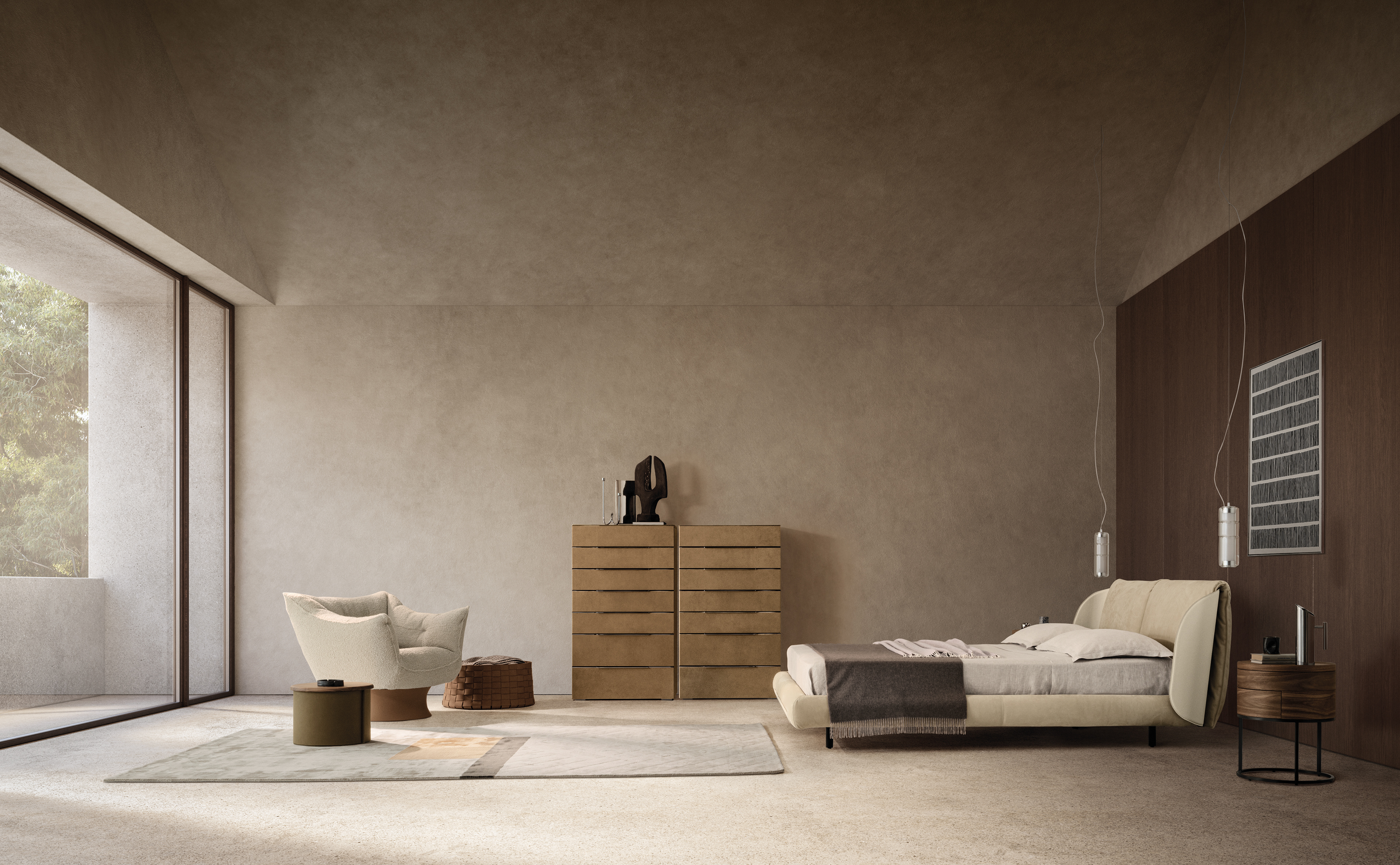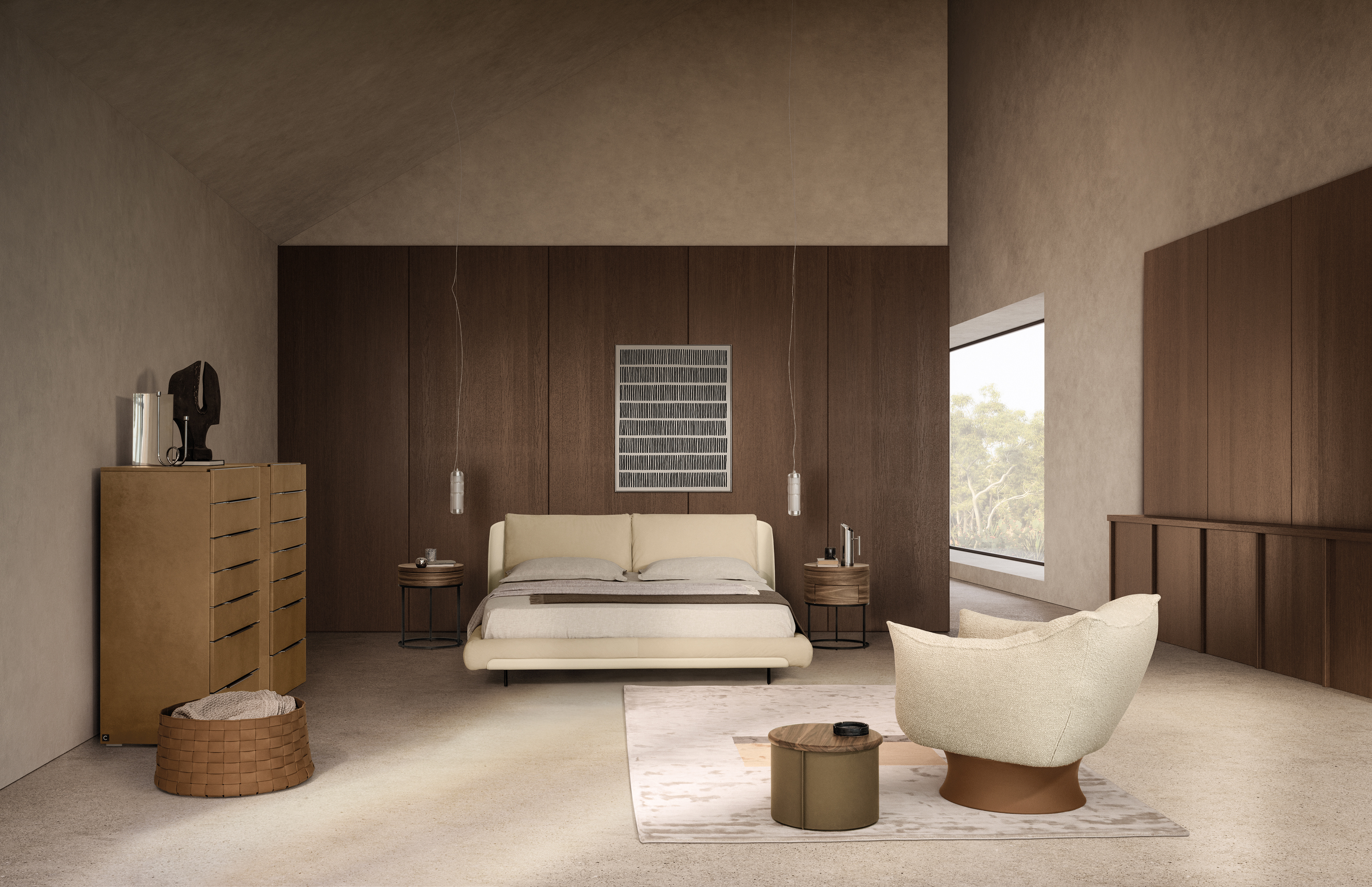 Refined and contemporary, Nest Bed becomes the centerpiece of the bedroom, blending modern aesthetics with emotional design in every detail. Raffinato e contemporaneo, Nest Bed diventa protagonista della camera da letto, unendo estetica moderna e design emozionale in ogni dettaglio.