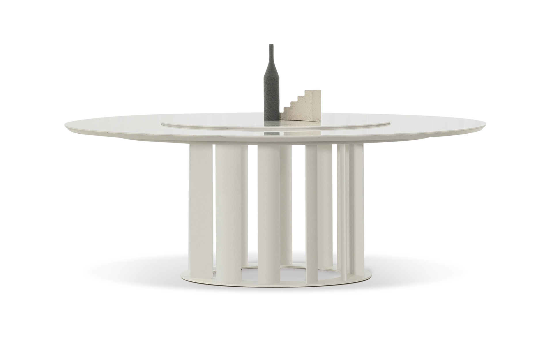 Two extremes seek each other and are rejected, this is the secret behind Tao, a table that embodies manufacturing excellence. The contrast between the upper surface with its rotating lazy susan and the sculptural base creates a type of style that is hard to define; the visual impression is of a world resting on marble pillars. Due movimenti che si rincorrono, uno esterno e uno interno. Due estremi che si cercano e si respingono, è questo il segreto di Tao, un tavolo che esalta l’eccellenza nella manifattura. Il contrasto tra piano d’appoggio con lazy susan girevole e basamento scultoreo, realizza un canone di eleganza che sfugge a facili tentativi di definizione; l’impatto visivo è quello affascinante di un universo che poggia su pilastri di marmo.