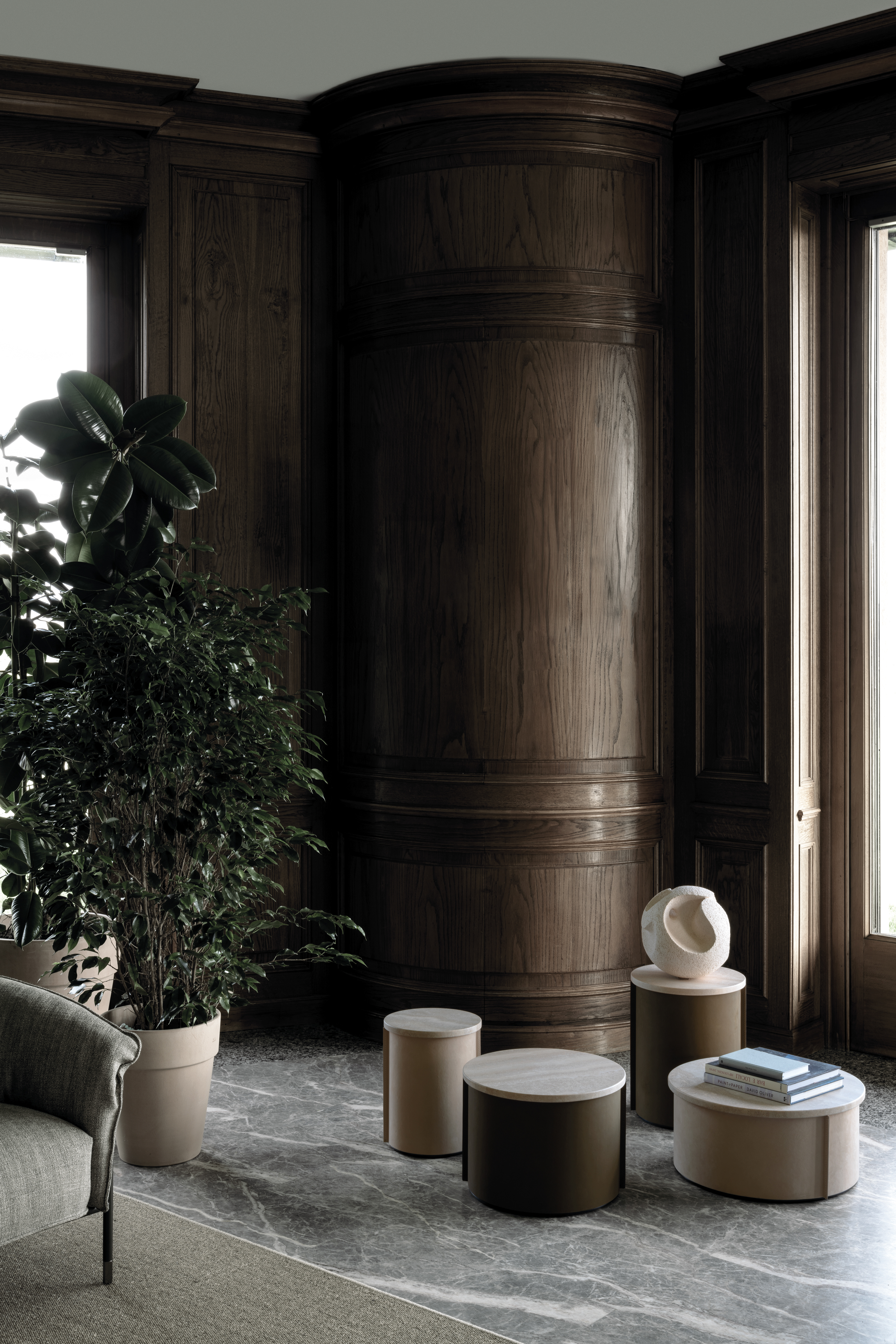 A CIRCLE OF MARBLE OR WOOD, SUSTAINED BY AN ESSENTIAL STRIP OF LEATHER, ITS PLACE IS ANYWHERE WE DESIRE, ITS TIME IS NOW AND FOREVER. UN CERCHIO DI MARMO O DI MASSELLO, SOSTENUTO DA UNA ESSENZIALE DIRETTRICE DI CUOIO, E IL SUO POSTO È OVUNQUE VOGLIAMO CHE SIA, IL SUO TEMPO È ADESSO E PER SEMPRE.